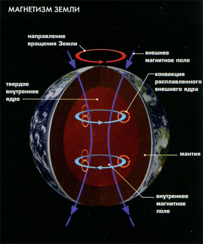 Из всех материалов, способных генерировать магнитные поля, железо, вероятно, наиболее мощное в этом смысле. Поскольку ядро Земли состоит из железа с примесью никеля, наша планета действует как гигантский магнит. Но магнетизм Земли формирует-ся благодаря расплавленной материи вокруг ядра.