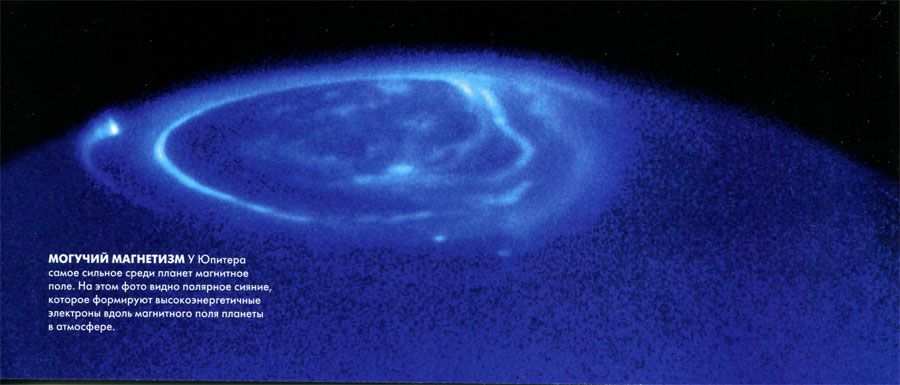 В иных частях Солнечной системы некоторые жидкие среды также формируют магнитные поля. Вихревые океаны металлического водорода в глубине Юпитера и Сатурна могут создавать динамо-эффект даже мощнее, чем расплавленное железо в ядре Земли. Именно электрически заряженный водород ответственен за формирование постоянно меняющегося магнитного поля самого Солнца. У Нептуна и Урана также есть магнитные поля, но они резко отклонены от оси вращения планет. Это дает основание полагать, что электрически заряженная жидкая среда расположена ближе к поверхности планет.