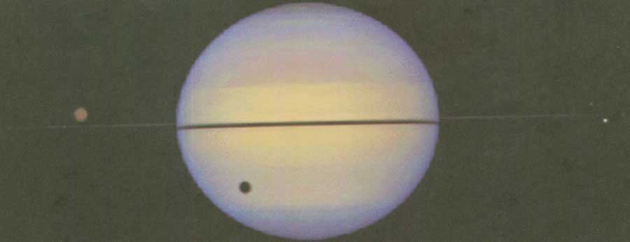 Этот снимок Сатурна сделан на телескопе Хаббла, когда кольца были видны сбоку.