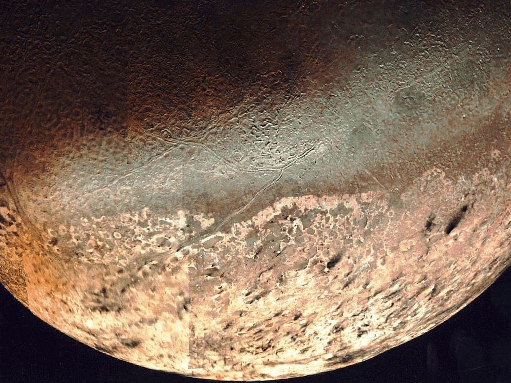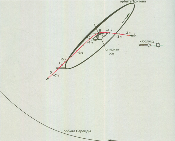 Однако вернемся к описанию странствий "Вояджера" вблизи Нептуна. Тритон стал звездой нептуновского шоу. Его исследование оказалось под стать работе детектива из сыскного бюро Скотленд-Ярда.