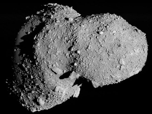 Один из астероидов, сближающихся с Землей, — 25143 Itokawa — уже изучен весьма подробно: рядом с этим 500-мет¬ровым телом в 2005 г. несколько месяцев работал японский зонд «Хаябуса» (табл. 14.4). Дважды (20 и 25 ноября) он садился на поверхность астероида и пытался взять образцы грунта, но уверенности в том, что это удалось, нет. Тем не менее, экспеди¬ция оказалась удачной: детально изучена поверхность астероида (рис. 14.12), измерена средняя плотность его вещества (2 г/см3), альбедо (0,53), период вращения (12 час), скорость отрыва с поверхности (около 20 см/с). «Хаябуса» должен вернуться на Землю в 2010 г., возможно, с образцами грунта.